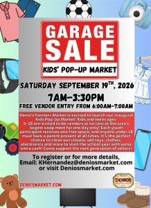 Denio’s Farmers Market is excited to launch our inaugural Kids Pop-Up Market! Kids and teens ages 5–19 are invited to be vendors at no cost at the area’s largest swap meet for one day only! Each youth participant receives one free space, and anyone under 18 must have a parent…Read More